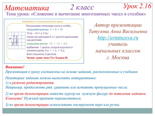 - Обучение сложению и вычитанию в начальной школе