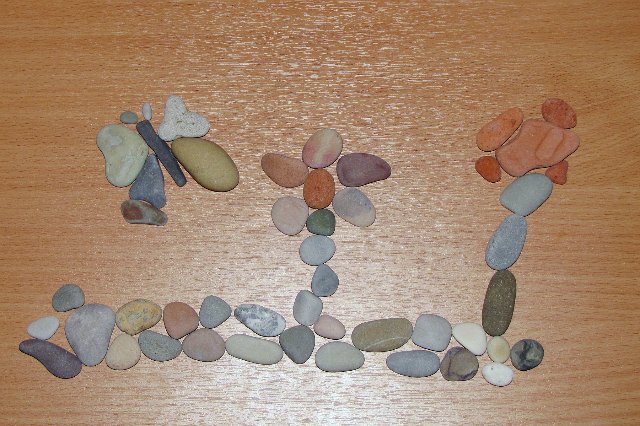 - Намазывайте каждый камушек клеем снизу и крепите к ватману по рисунку.