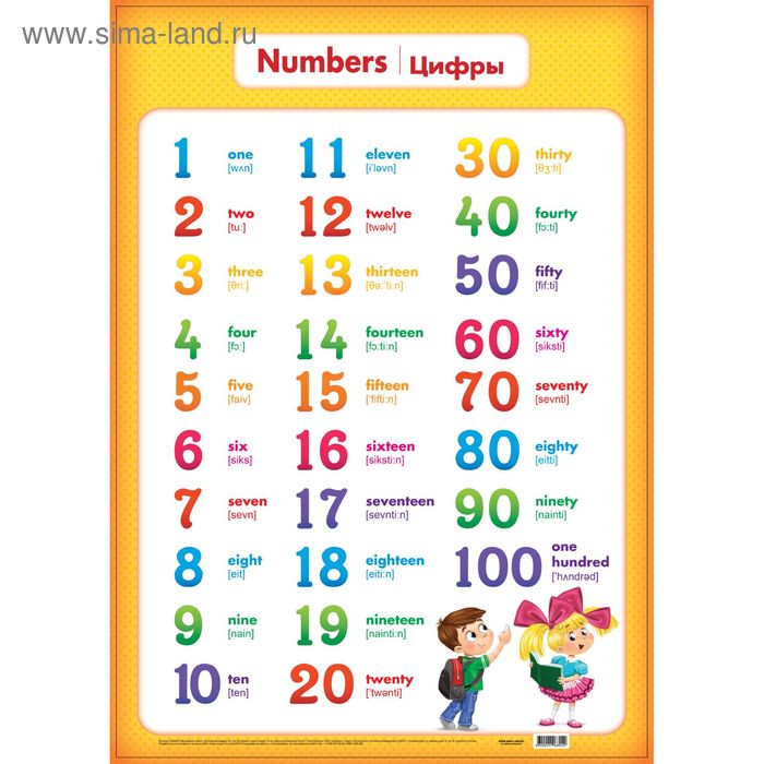 Для того чтобы научиться считать, мы начнем с цифр, которые легко и быстро произносятся, от 1 до 12. После того как ребенок уверенно считает в этом диапазоне, можно переходить к числам с суффиксом teen: thirteen, fourteen, fifteen. Таким образом, у ребенка появится необходимое созвучие и логика в этих числах. Далее переходим к десяткам и такому суффиксу как ty: thirty, forty, ninety. И завершающим этапом умения считать до 100 будет простая арифметика. Сложение десятков и единиц: 20+1, 30+3, 50+5, и далее. Такая система помогает сделать изучение цифр на английском логичным, без того, чтобы учить их наизусть.